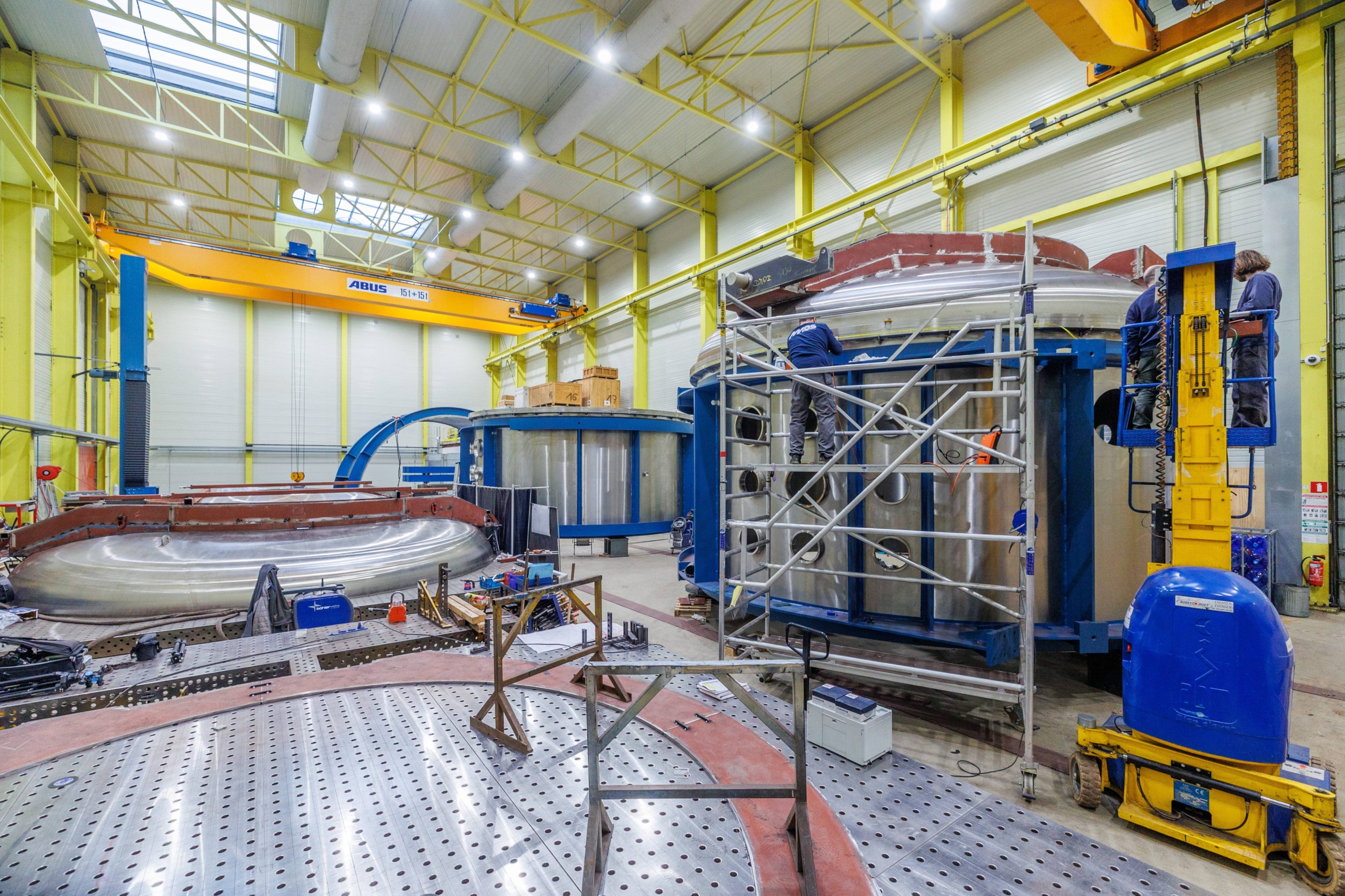 Designed and built by AMOS for the Centre Spatial de Liège, FOCAL-7 is a 14m long, 7m diameter space simulator for optical testing and payload qualification, featuring a 180-ton seismic mass and a 115-ton hosting capacity.