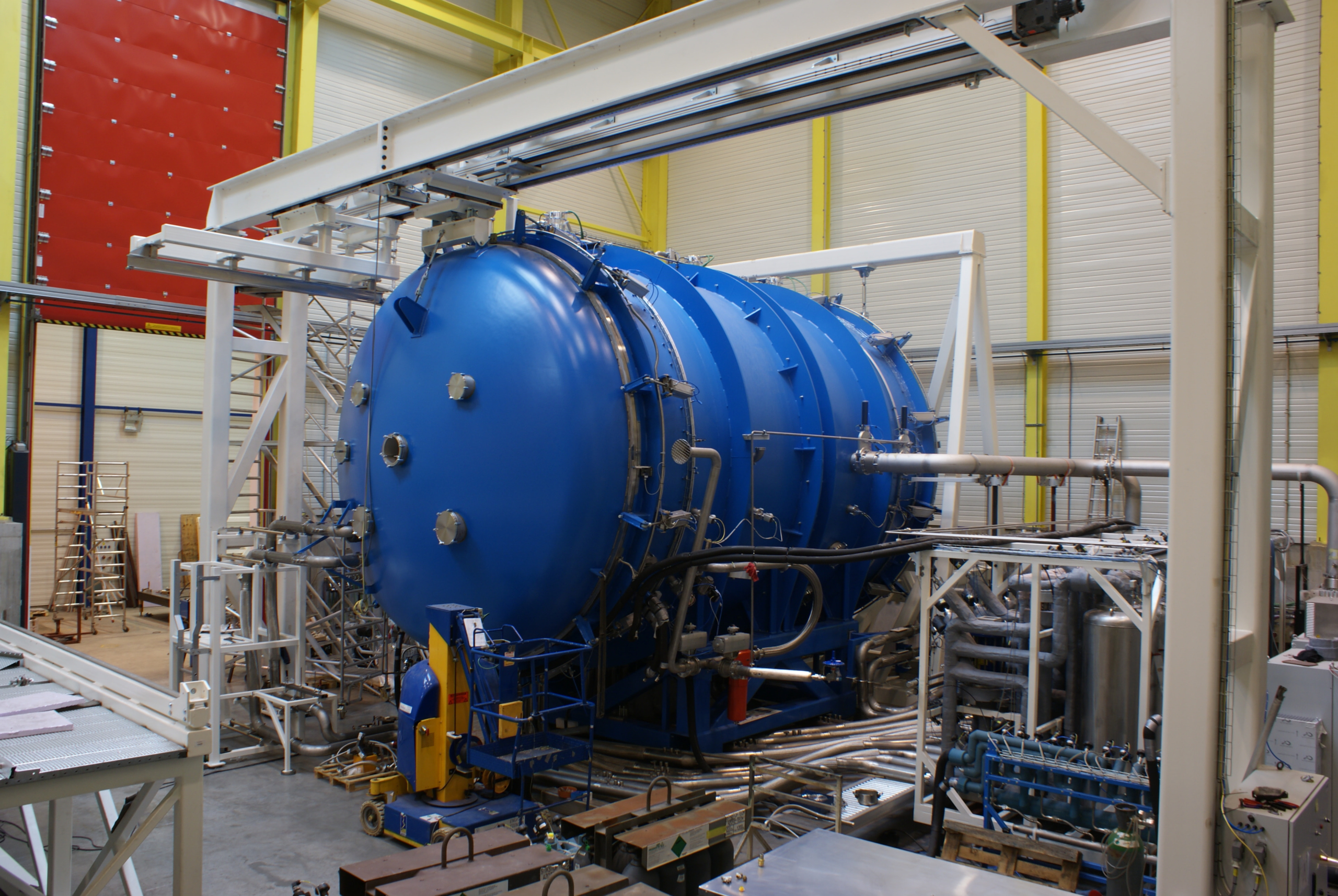AMOS designed and built a 4.5m diameter automated thermal vacuum chamber for VSSC in India. Its purpose was testing solar panels under vacuum and various temperatures.
